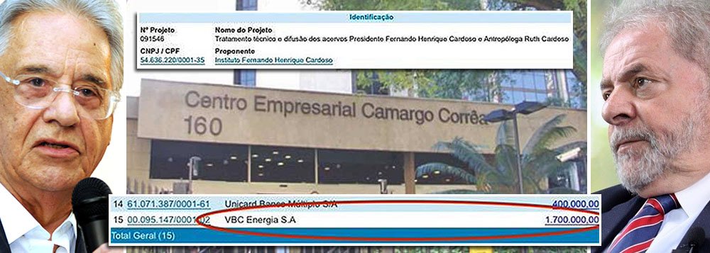 A Camargo Corrêa foi uma das 12 empresas que fizeram doações para a criação do iFHC em 2002. Além disso, após a divulgação das doações da empreiteira ao Instituto Lula e de R$ 1,5 milhão à LILS Palestras Eventos e Publicidade – que de acordo com o Instituto Lula, “são referentes a quatro palestras feitas pelo ex-presidente, todas elas eventos públicos e com seus respectivos contratos” – veio à tona a notícia de que a mesma empresa, através da VBC Energia, foi a maior doadora do projeto de digitalização do acervo de FHC e da ex-primeira-dama Ruth Cardoso.