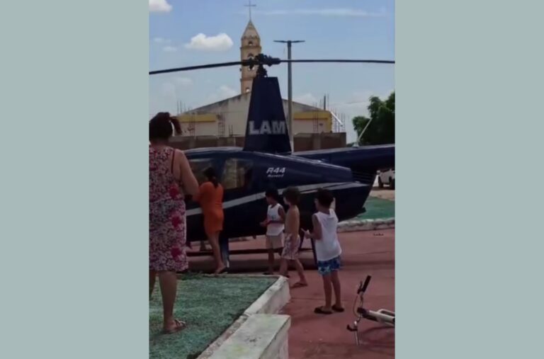 Um helicóptero fez um pouso inesperado em uma praça pública da cidade de Belém do Brejo do Cruz, no início da tarde desta sexta-feira (17), no Sertão do estado.