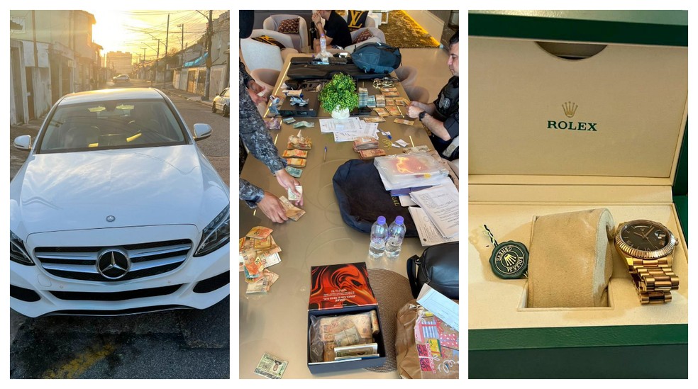 Entre os itens mais chamativos estão uma Mercedes-Benz G63 rosa, avaliada em cerca de R$ 2 milhões, e até uma réplica de um carro de Fórmula 1 da McLaren — ambos encontrados na mansão de Chrys Dias.