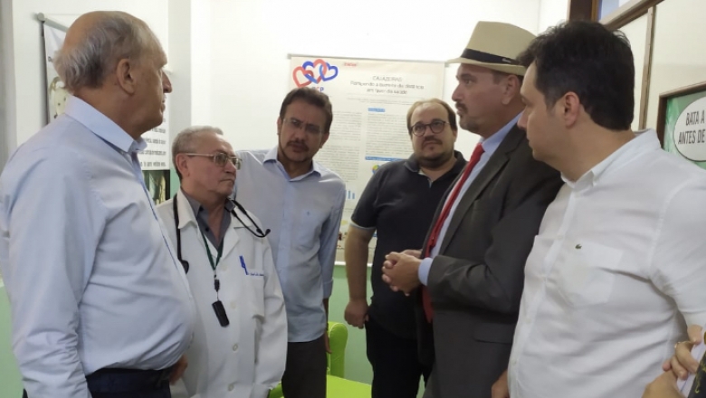 Com o Secretário estavam o Diretor daquela casa de saúde, Manuel Telamon Arruda, dois outros Secretários de Estado, Júnior Araújo e Denise Oliveira, o médico e ex-prefeito de Cajazeiras, Carlos Antônio, e o deputado estadual Jeová Campos.